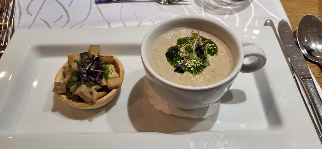 Cremesuppe von Steinchampignons mit Waldpilzsalat